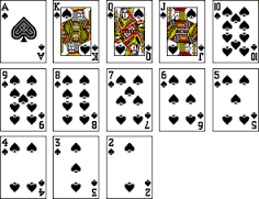 - ♠ - pikk, alapesten és négyszínű pakliban is fekete, a legerősebb szín